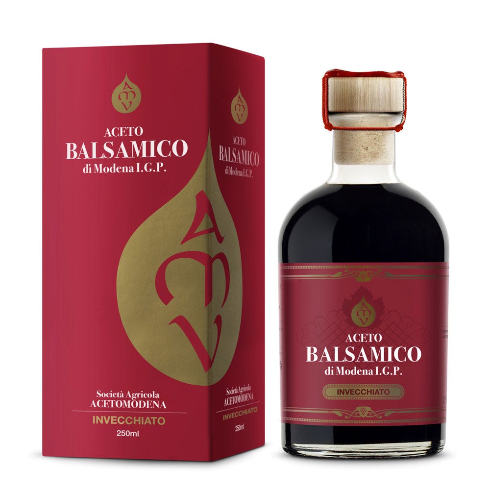 IGP balsamic vinegars are a mixture of cooked grape must and wine vinegar. The only other ingredient Acetomodena uses, is time.