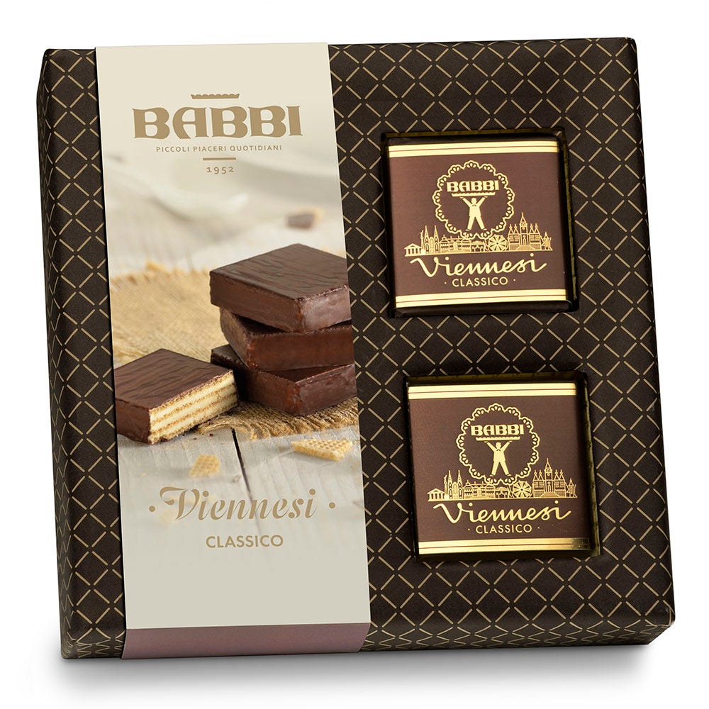 One of Babbi’s most iconic creations. Beautifully wrapped, thin waferini layers filled with fine vanilla cream and coated with dark chocolate.
