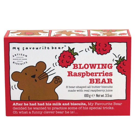 All-butter, natural, bear-shaped biscuits, with real raspberry juice.