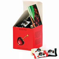 Bodrato’s signature chocolate, the Boero Cherry Shot, are like drunken cherries. They take a Slow Food Garbana cherry, macerate it slowly and generously in local Piedmont Grappa. It’s then dipped in the highest quality chocolate to create an alcoholic, liquid, cherry, chocolate experience like no other. In the Boero Cherry Shot Selection Box you get nine cherry shots, all in foil.