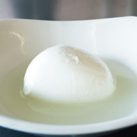 Imported by us directly from Campania every two weeks, these stretched curd cheeses from La Baronia embody the purity and goodness of buffalo milk. It is this fertile pasture, rich in wetland species, that gives the milk its delicate taste and unique aroma. The Cutillo family started La Baronia 30 years ago. They began by researching the working methods of the buffalo dairymen, practices that had been handed down since the 8th Century, when buffalos first arrived in Campania. Animal husbandry is everything to the family. To keep the buffalo happy and healthy in the hot Summer climate, the animals "swim" several times a day in large water tanks. How cool is that? The fresh, stretched curd cheese is composed of very thin layers. It is yielding in texture, porcelain-white in colour and has a slightly sour taste. It is thought that mozzarella takes its name from the verb mozzare, meaning 'to cut' referring to the way that the cheese makers cut each ball by hand from the large mass of stretchy curd formed when the cheese is immersed in hot water and kneaded by hand.