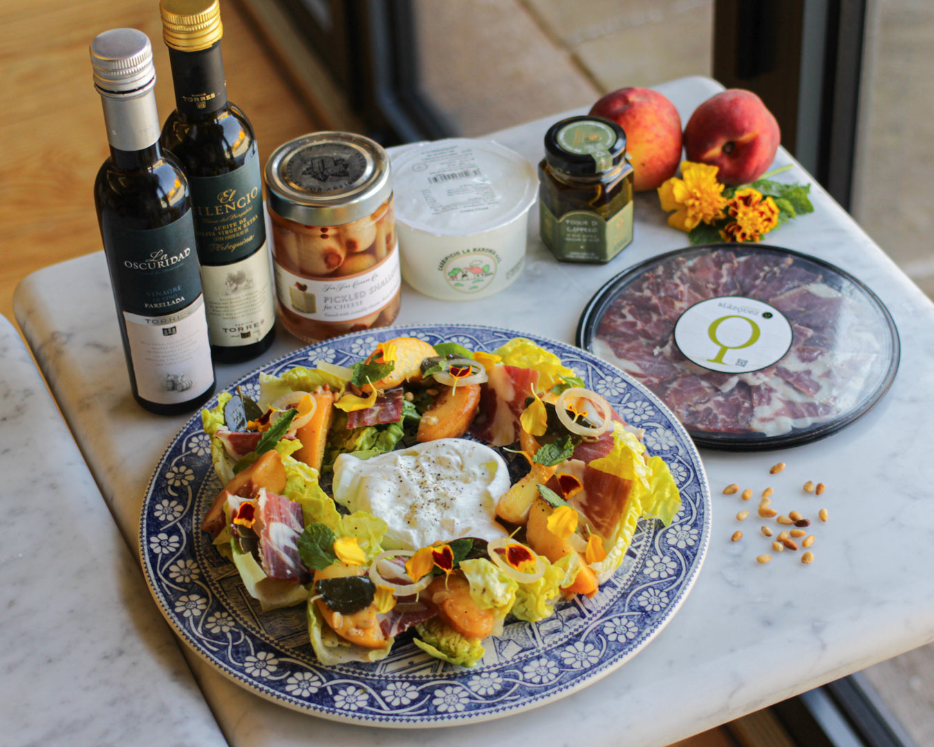 Burrata, Charred Peach & Ibérico Salad