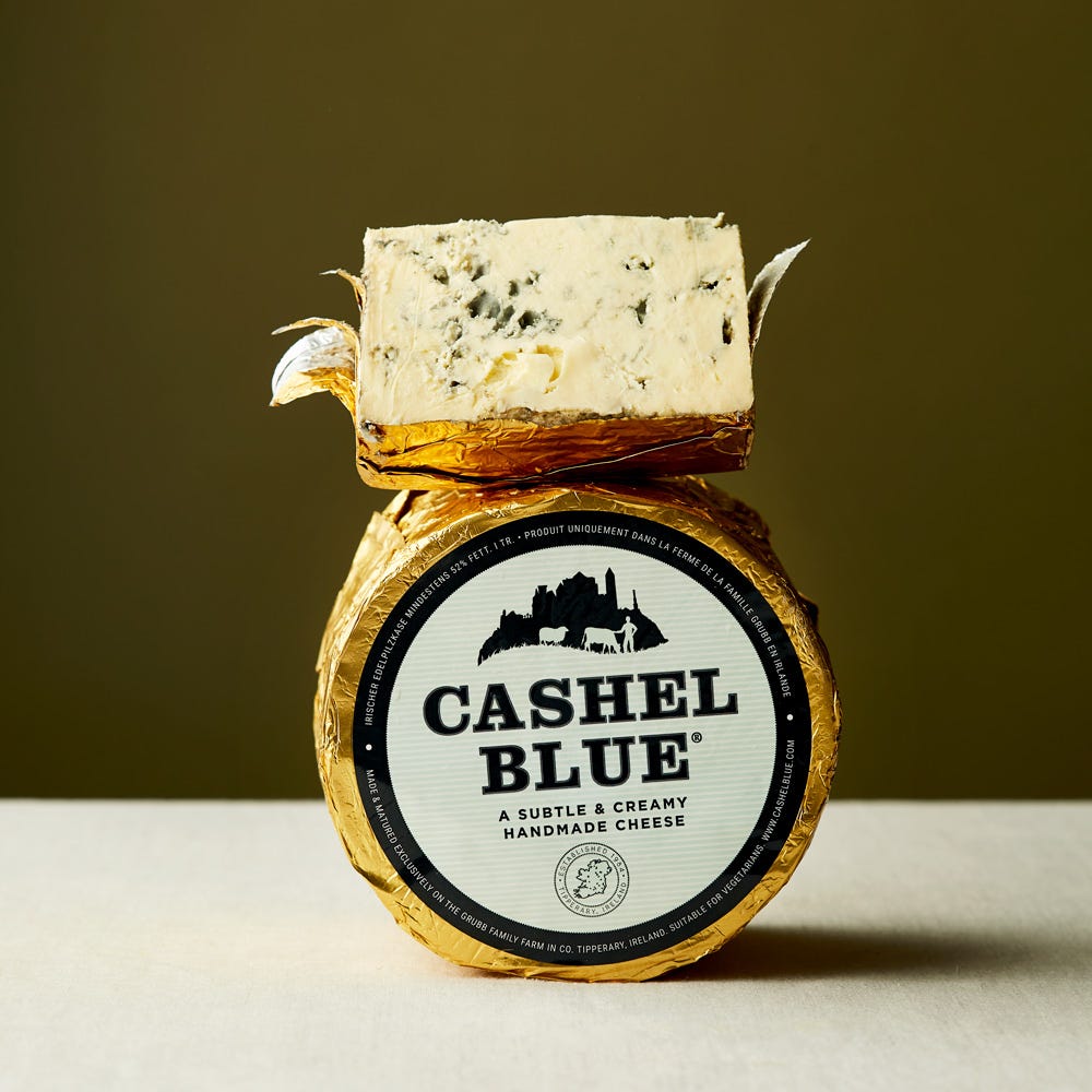 Irelands' most famous blue cheese, Cashel Blue is gentle and crumbly when young; but it matures to become a creamy-textured cheese with a full flavour. It was created in 1984 by the Grubb family, who were farmers on the Tipperary Plains. The farm and dairy are overlooked by the Rock of Cashel (from where the cheese takes its name).