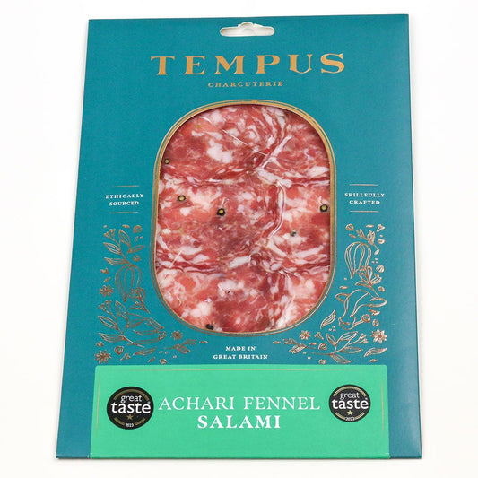 The spice mix used in this salami is based on a centuries-old Indian pickling recipe. Fennel seeds, Telicherry black pepper and fenugreek add an intriguing flavour to this salami with great complexity.