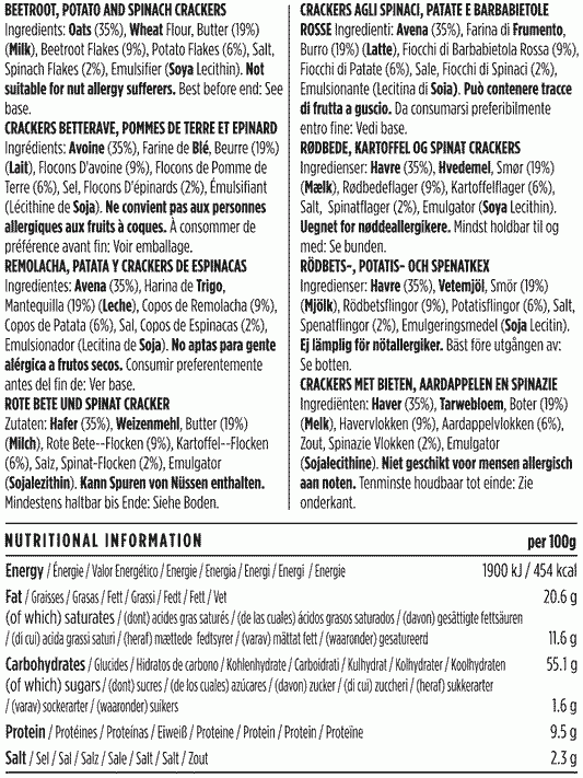 Beetroot, Potato and Spinach Crackers for cheese, pâtés and dips