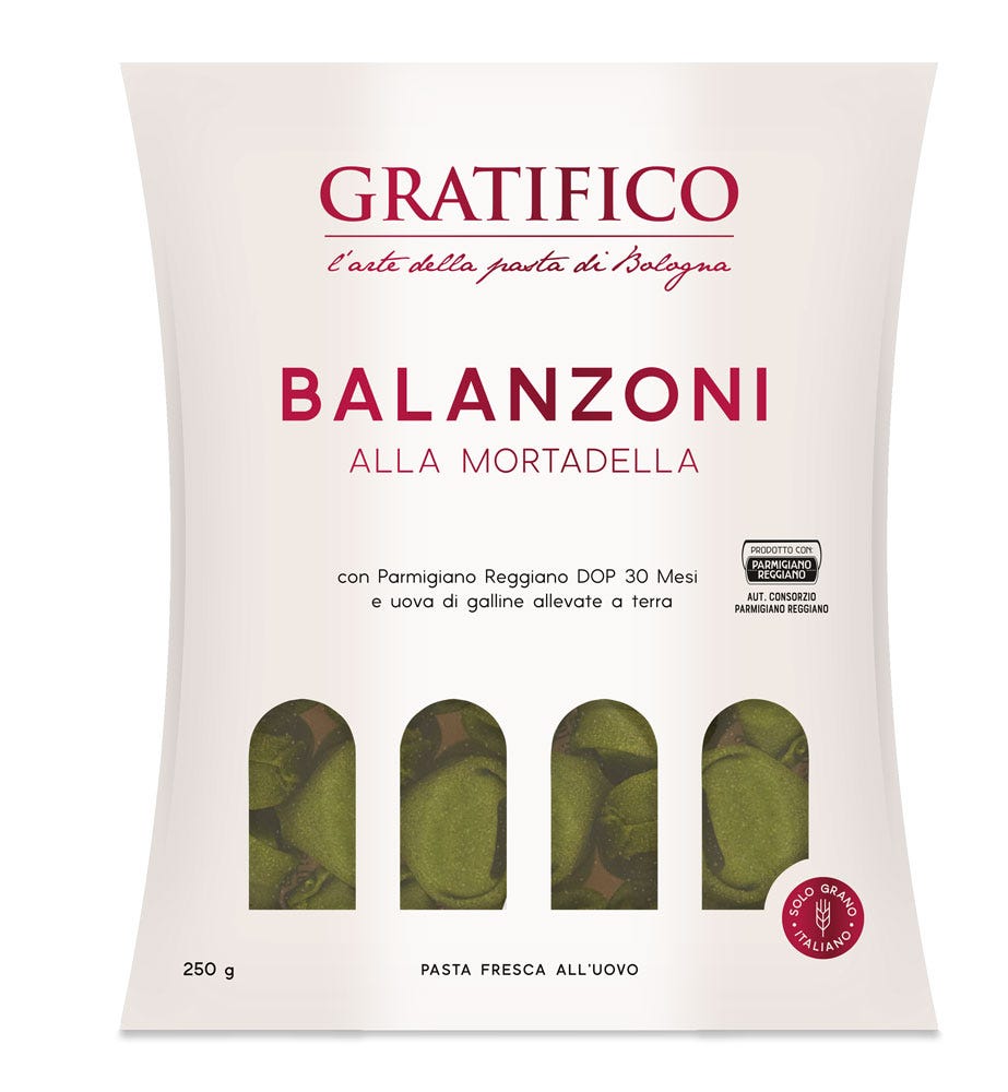 Fresh-filled pasta, from Bologna, Italy. Filled with Mortadella, soft fresh Ricotta, 30-month aged Parmigiano Reggiano DOP. Cooks in 4 minutes. Keep chilled.