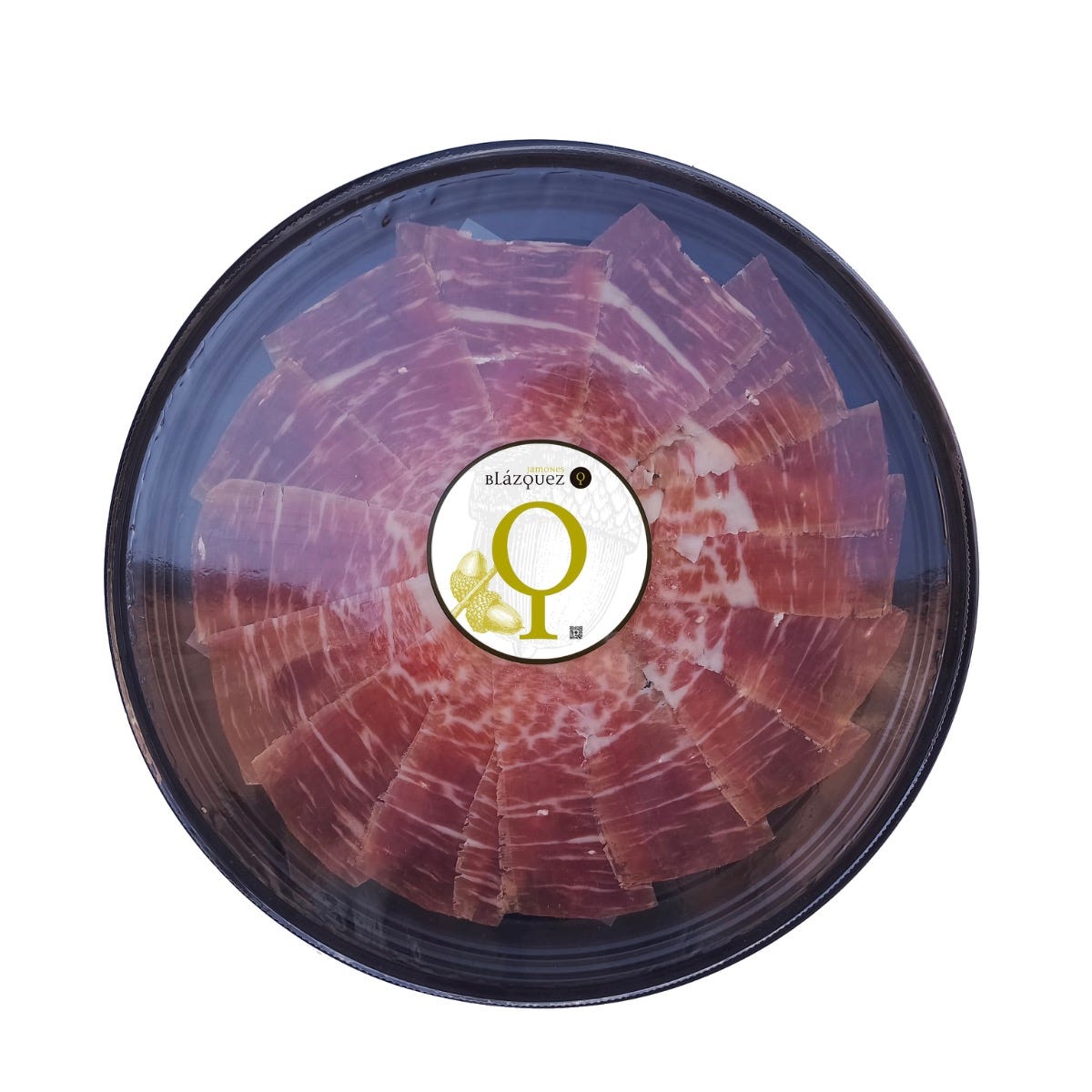 Jamon Iberico could well claim to be the king of cured meats; and its right to this title is justified by the rigid rules relating to production, and the granular grading of the hams. Jamones Blázquez is new to this country but is renowned in Spain and in scores of countries across the world. Its fame is based on its control of the entire process, which is in all respects in the family’s hands, from the breeding and rearing of the animals on their own pastures through the diet on which those animals graze, to the curing of the meat. What the Blásquez family produces is unique in the true sense of the word.