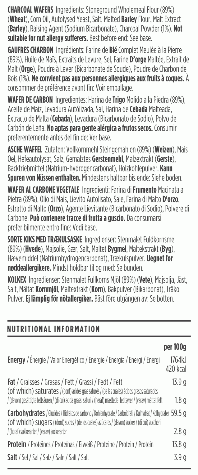 Dark and crisp wafers. Hexagonal wafers made with stone-ground flour, grown and milled in England.