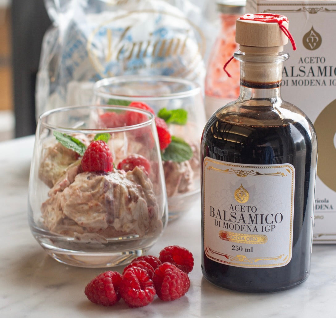 1. In a mixing bowl, combine the fresh raspberries with Belberry raspberry sauce and the Acetomodena Gold Drop. Gently mix to a coating texture, then let sit for 10-15 minutes to allow the balsamic to deepen the fruit's natural sweetness.