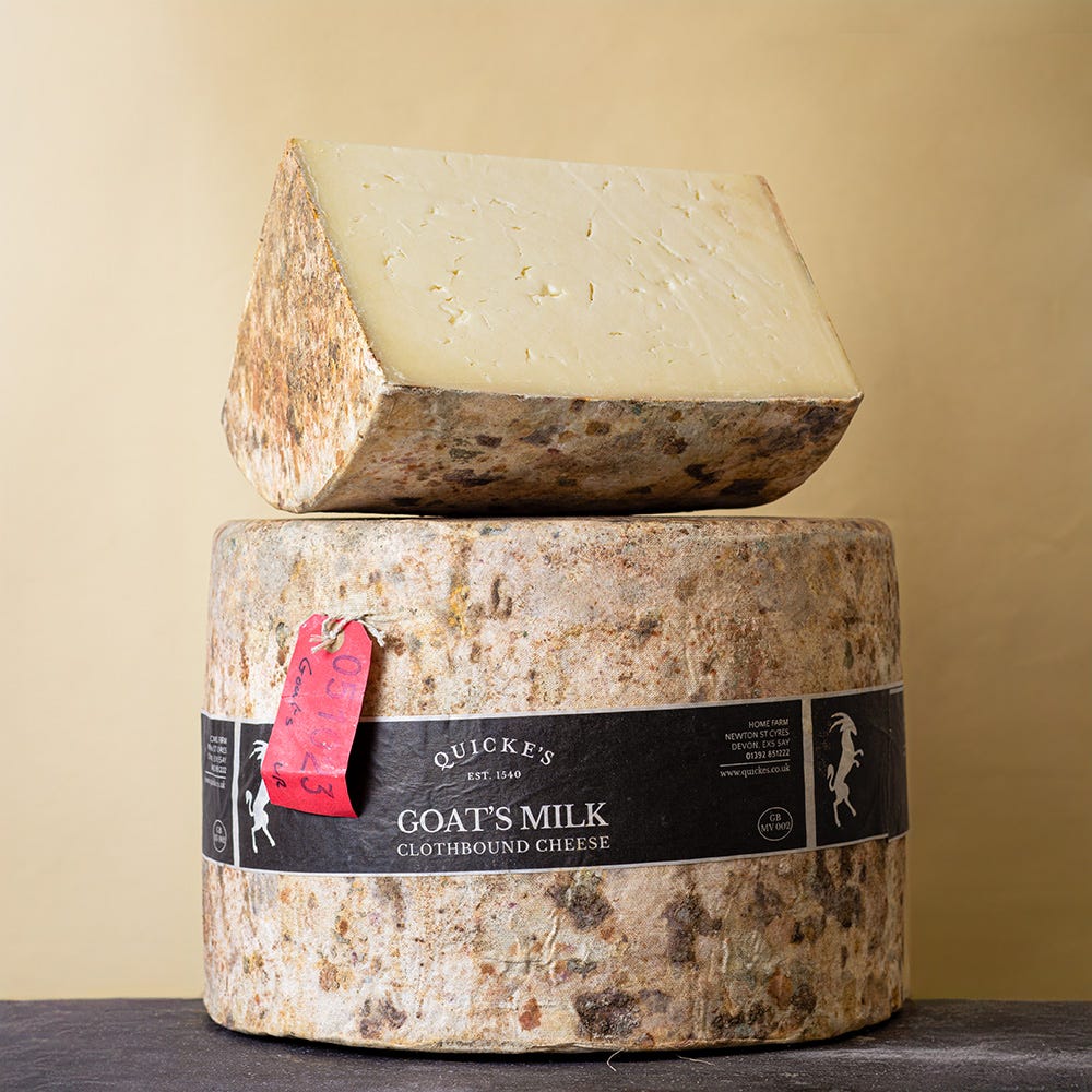 *A whole Quicke’s Goats’ Milk Clothbound Cheese weighs approximately 27kg. Smaller weights are a cut of a whole cheese.