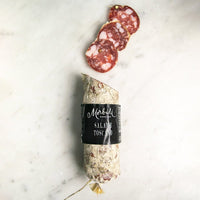 This salamino has an intense aroma, with a strong and savoury profile. The defining characteristics of the Salame Toscano are the hints of garlic and black peppercorn, which combine harmoniously with the meat.