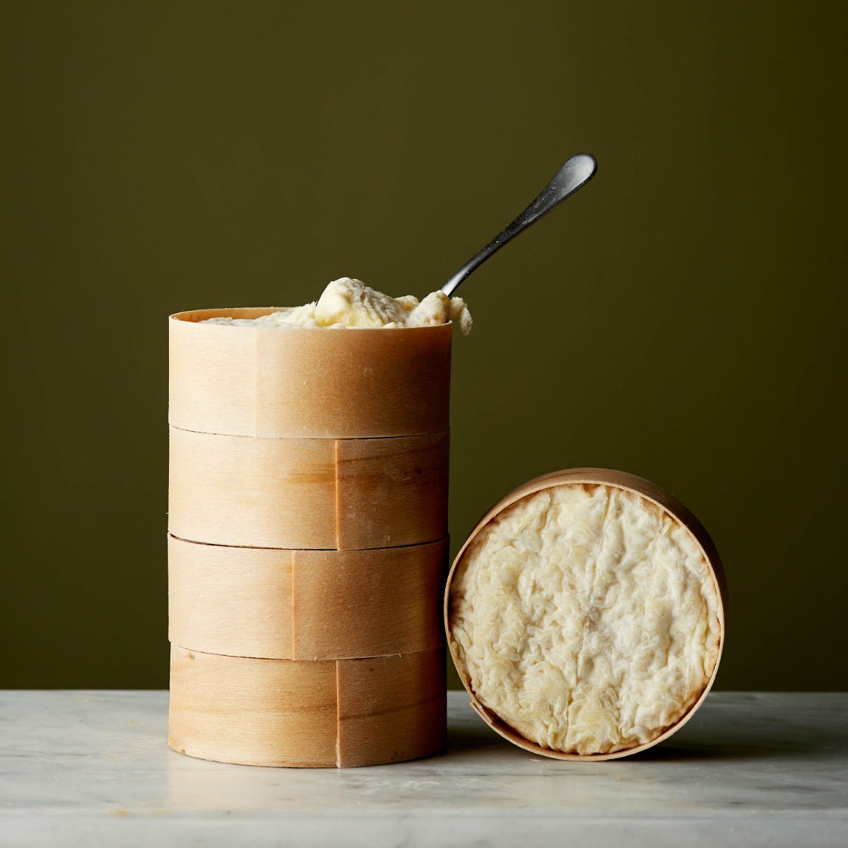 Julie uses the milk, still warm, from the first cows into the dairy parlour, to be transformed into this delicate, rich, dense and creamy cheese. She believes that cheese should be made slowly and gently, and so every step in the process of producing this lactic set cheese is performed by hand. The cheese is worth the wait: a thin, wrinkled coat, sometimes with a delicate cream line underneath, encases the rich core. The taste is delicate but complex, with a lingering finish.