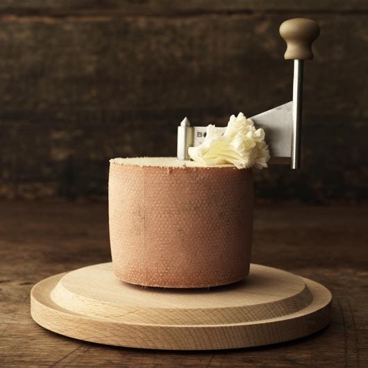 ‘Mushroom’ and ‘meaty’ flavours. A rich, firm cheese, made from sweet, Alpine milk. It is traditionally served in shavings cut by a Girolle.