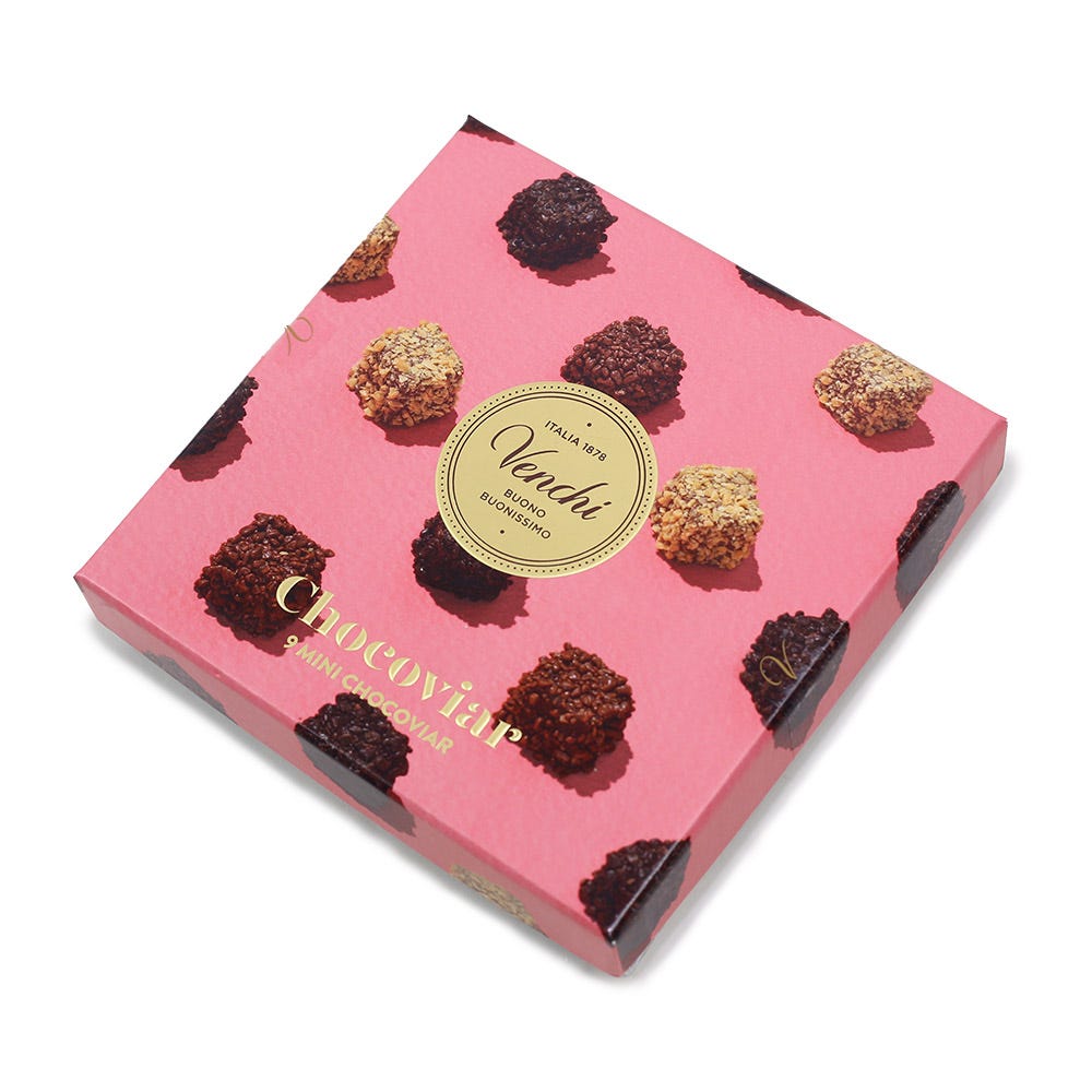 Venchi Chocaviar gift box with an assortment of nine Chocaviar mini pralines.