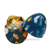 A reusable money tin decorated with an out-of-this-world design, and filled with an assortment of milk cream chocolates with Piedmont hazelnuts. Made by Italian master chocolatiers Venchi since 1878.