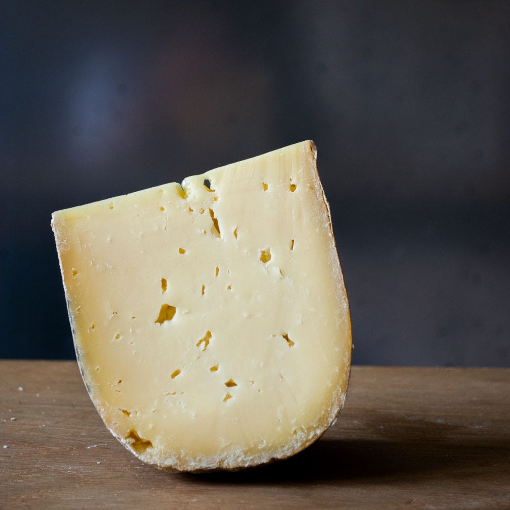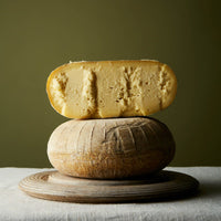 Everything is still made by hand, and the quality of the milk is paramount. Graham uses the milk from his own herd of Holstein Friesian cows to make the cheese, which is formed in a basket mould before being aged for four months for a rich, deep flavour. As a hand-made, single-herd cheese, Wyfe of Bath’s taste changes slightly according to the season, but it is always sweet and rich, and redolent of buttercup meadows! The cheese is similar in style to a young Gouda, but it is not pressed, and this gives it a much more springy texture than its Dutch cousin.
